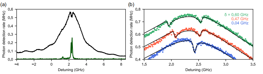 Dipole-Induced Transparency (DIT): The paper reports the observation of dipole-induced transparency (DIT) and photon statistics measurements, which are crucial for spin-photon entanglement and communication in quantum networks.