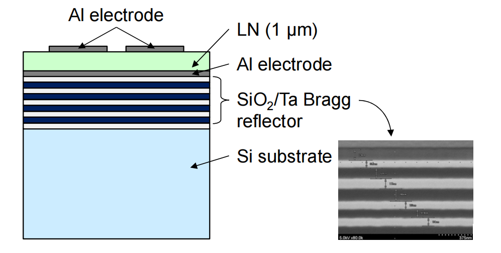- **Solidly-Mounted LN Overtone Resonator**: A third overtone resonator with 1 μm thick LN and a SiO₂/Ta Bragg reflector demonstrated a strong third overtone response at 9.5 GHz, with a 1% bandwidth and a 31 dB impedance ratio.