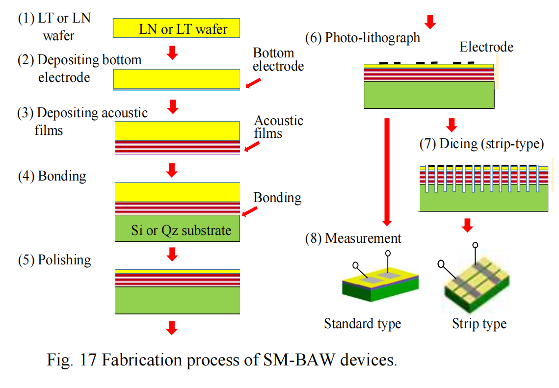 - **BAW Devices**: Solidly mounted BAW resonators (SM-BAWRs) using LiNbO₃ or LiTaO₃ have been developed to achieve high frequencies (up to 9.5 GHz using overtone modes). These devices exhibit wide bandwidth and high-frequency performance.