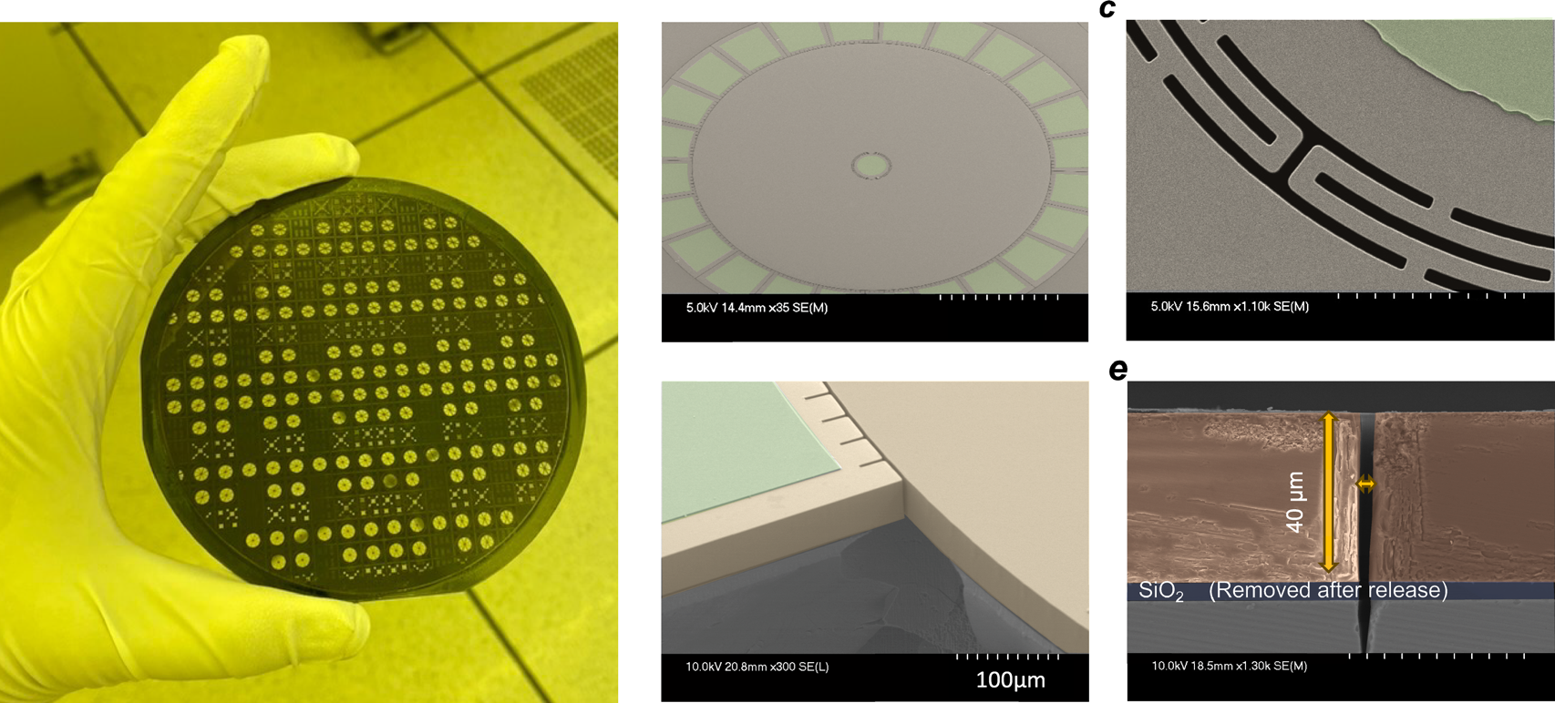 - The gyroscopes were fabricated using wafer-level deep reactive ion etching (DRIE) on bonded SiCOI wafers. The design includes a 40 µm thick 4H-SiC layer and 3.5 µm capacitive transduction gaps, which allow for efficient electrostatic actuation.