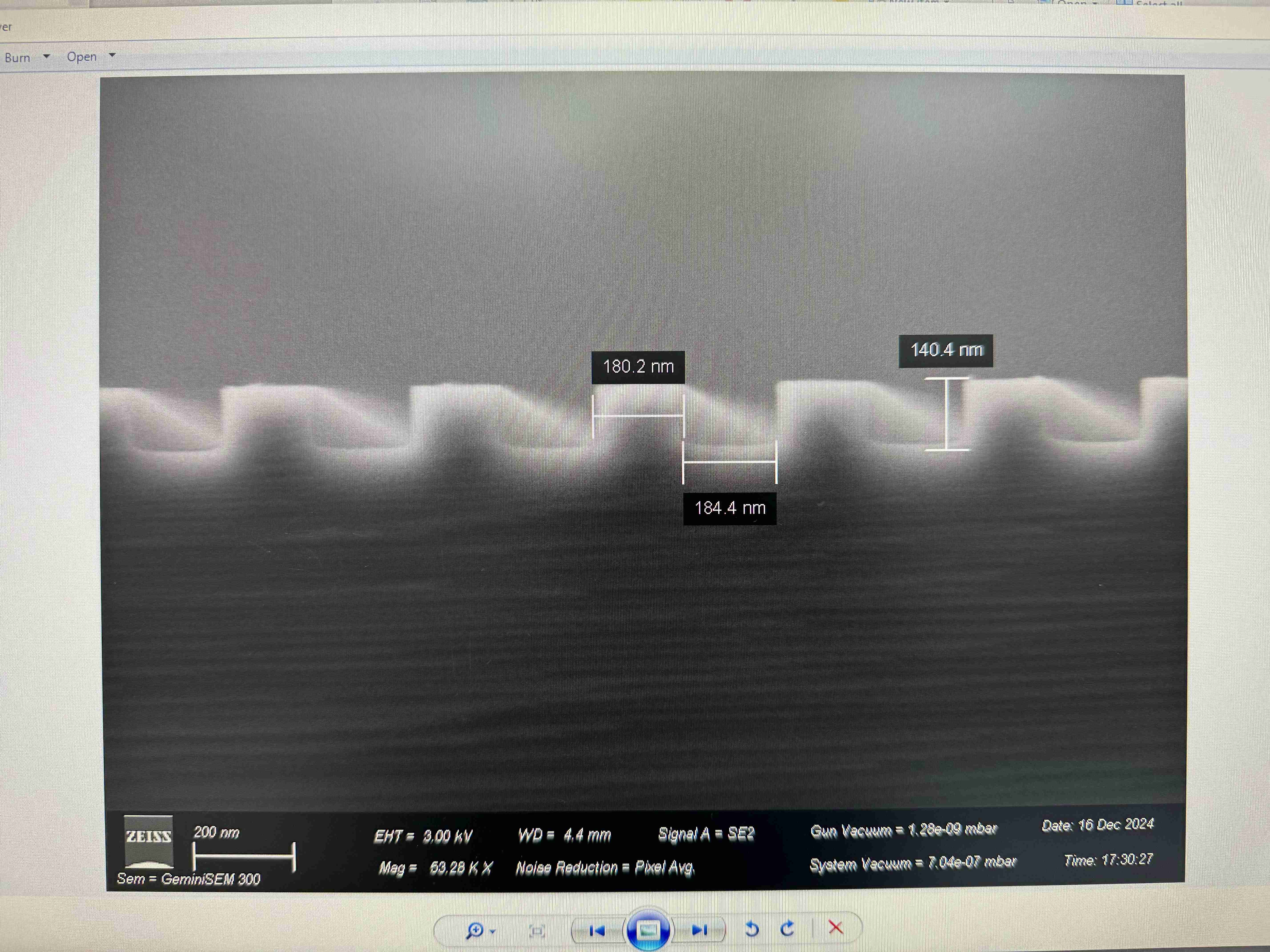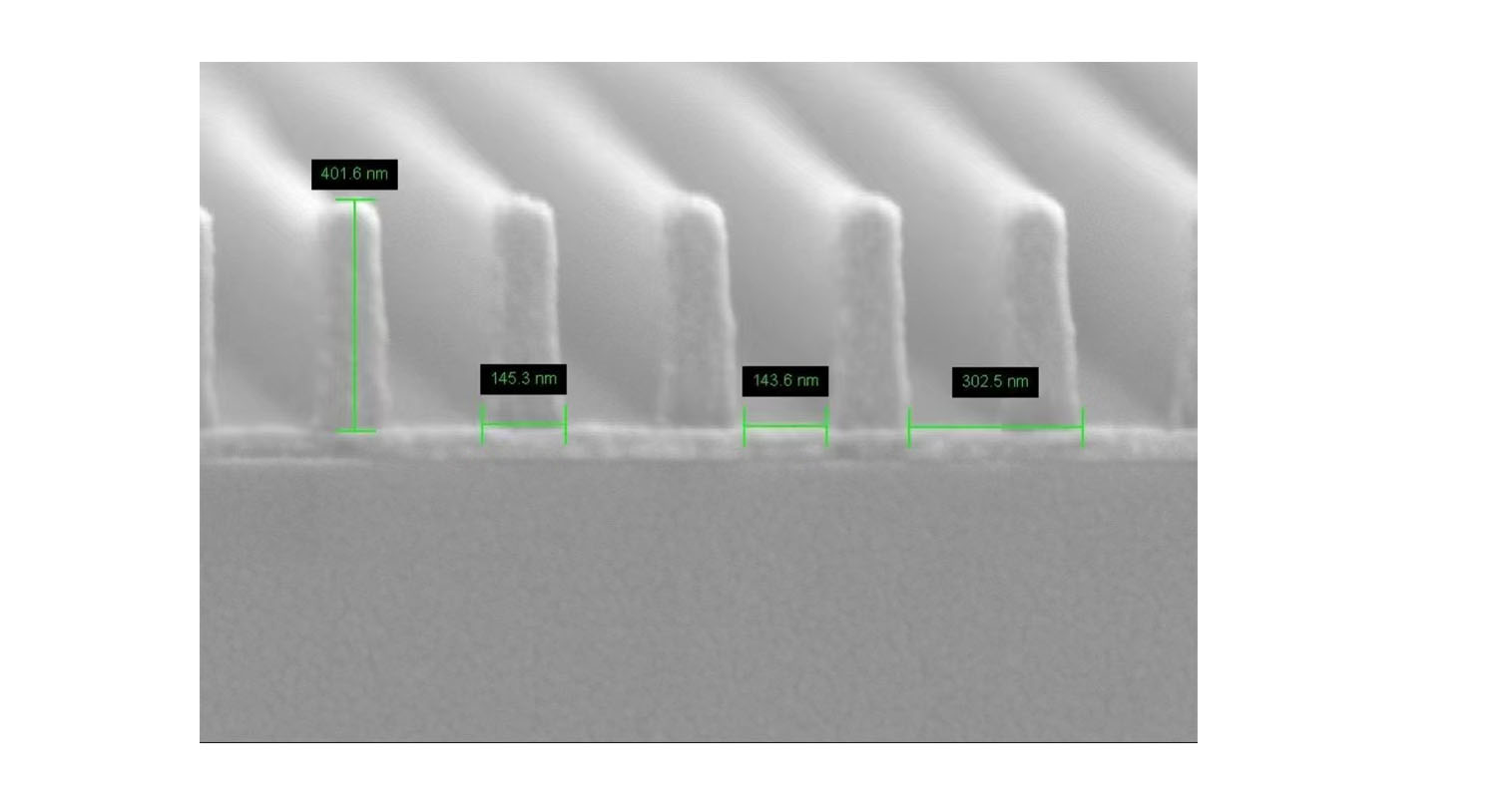 Si3N4 feature size 55nm, aspect ratio 4:1, steepness 85±3°