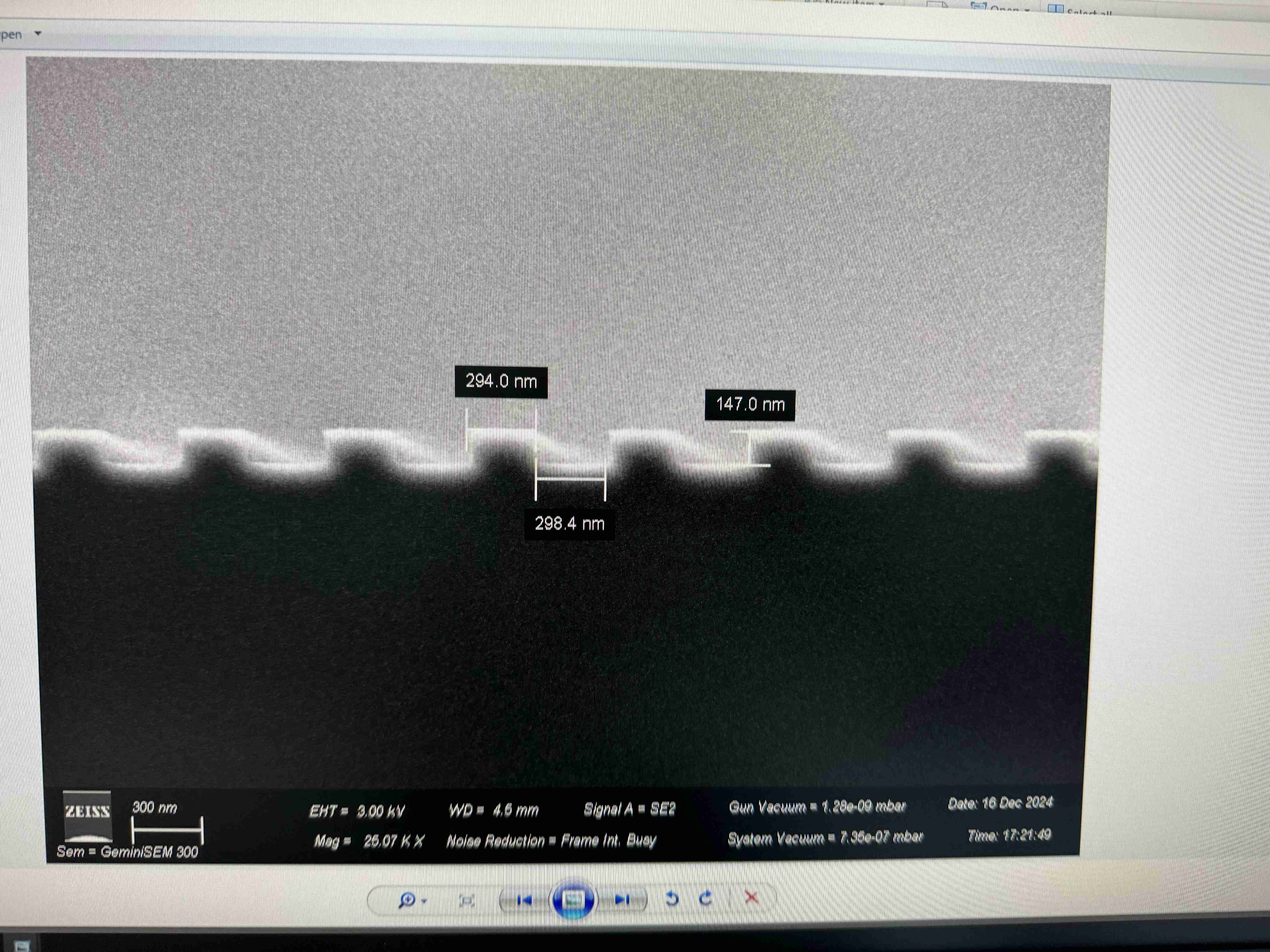 Gold Feature size 100nm, aspect ratio 3:1, steepness 85±3°