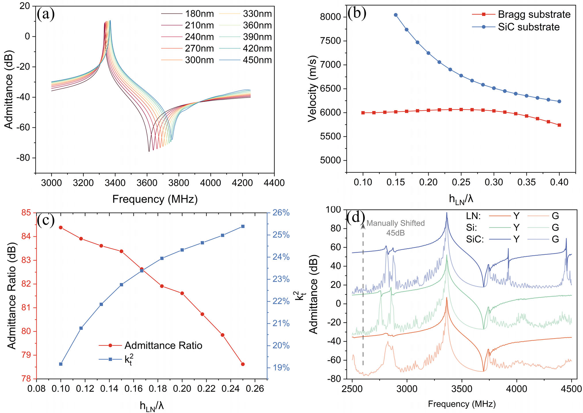 The fabrication of LLSAW resonators that exhibit an excellent admittance ratio (AR) and a large electromechanical coupling coefficient (k²_t), achieving impressive performance across the 3.2–3.7 GHz frequency range.