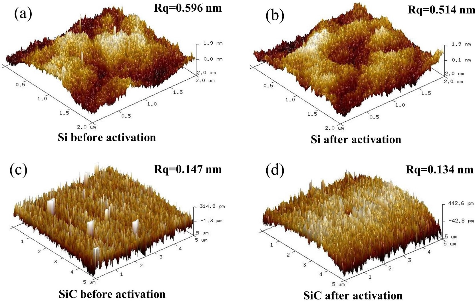 Surface and Interface Characterization: The study also investigates the surface roughness and chemical changes post-activation using atomic force microscopy (AFM) and X-ray photoelectron spectroscopy (XPS), revealing the oxidation of the surfaces. The surface roughness slightly decreases after plasma treatment, which improves the bonding.