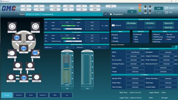 The user interface equipped 21 inch display panel. User can monitor the machine`s statue and wafer process data in real time at main screen. The software supports a remote interface, allowing users to remotely monitor equipment and operate the software through the Net.