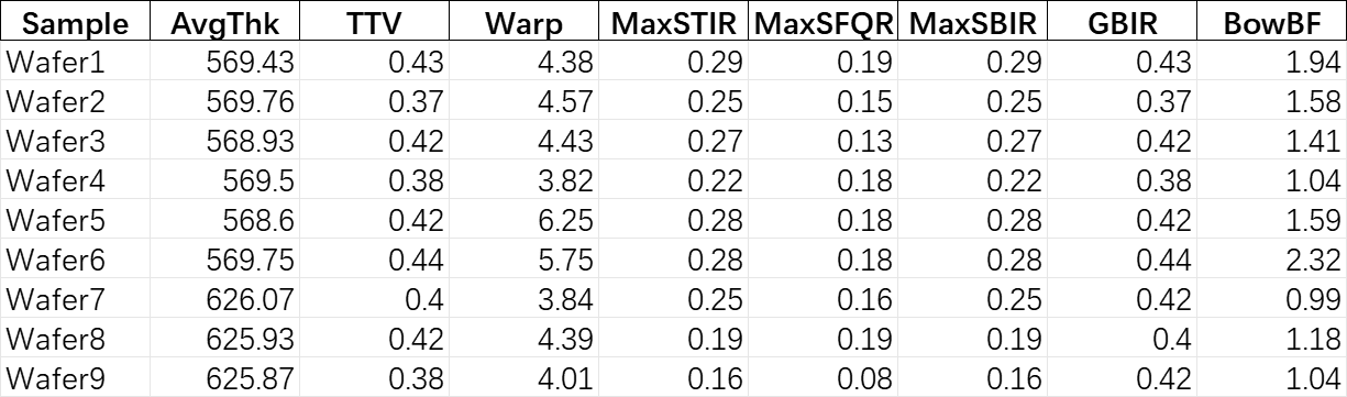 #Provide ultra-flat silicon wafers comparable to Finland's OKemetics, and can mass-productation ultra-flat silicon wafers with TTV<500nm. The measured data are as follows