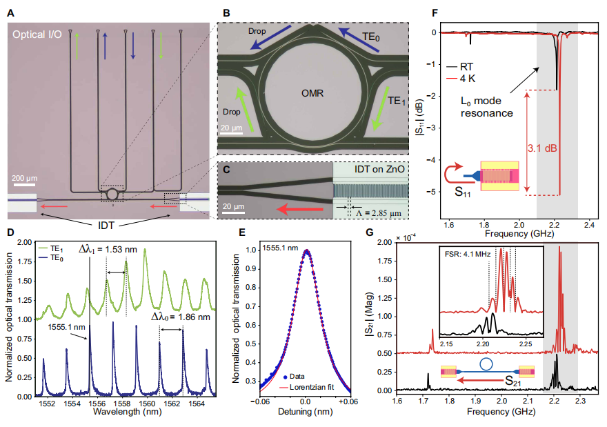 Experimental Validation: The system demonstrated microwave-to-optical conversion with a transduction efficiency of 1.5 × 10−5 at 10 mW optical power and a peak conversion efficiency of 1.2% at 3.6 mW microwave power.