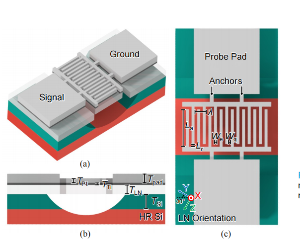 Material Selection & Design: Thin-film LN is chosen for its high electromechanical coupling, desirable for high-temperature applications. Platinum electrodes with a titanium adhesion layer are used, chosen for their durability at elevated temperatures.