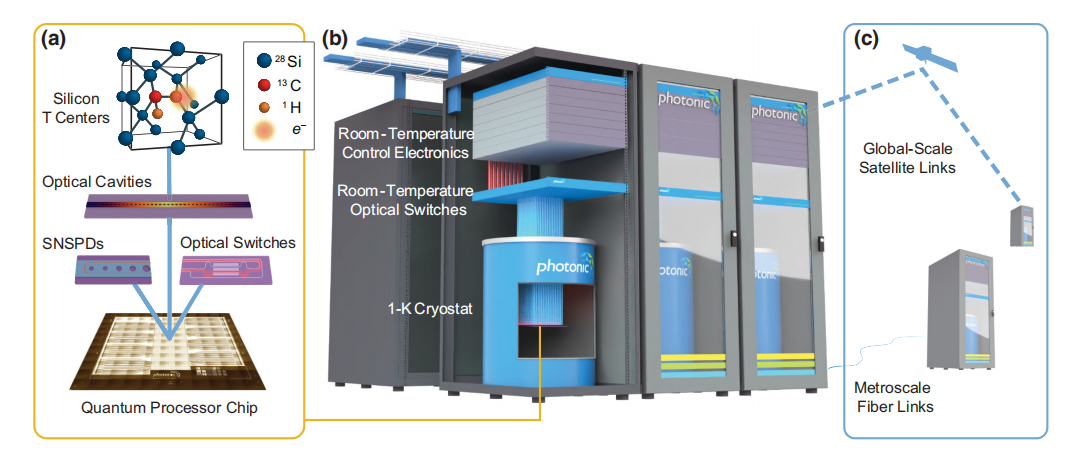 Scalable Quantum Architecture: The proposed architecture uses silicon-based spin qubits (specifically T centers) and their spin-photon interfaces for modular quantum computing and networking. Silicon T centers offer excellent coherence times and fidelity while directly interfacing with telecom-band photons, which are ideal for long-distance entanglement distribution across quantum networks.