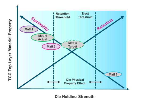 The TCC is designed to securely hold dies during surface preparation steps while ensuring easy die ejection. A critical element is ensuring that the die retention strength is not too low (which could cause the die to detach) or too high (which could prevent successful die ejection).