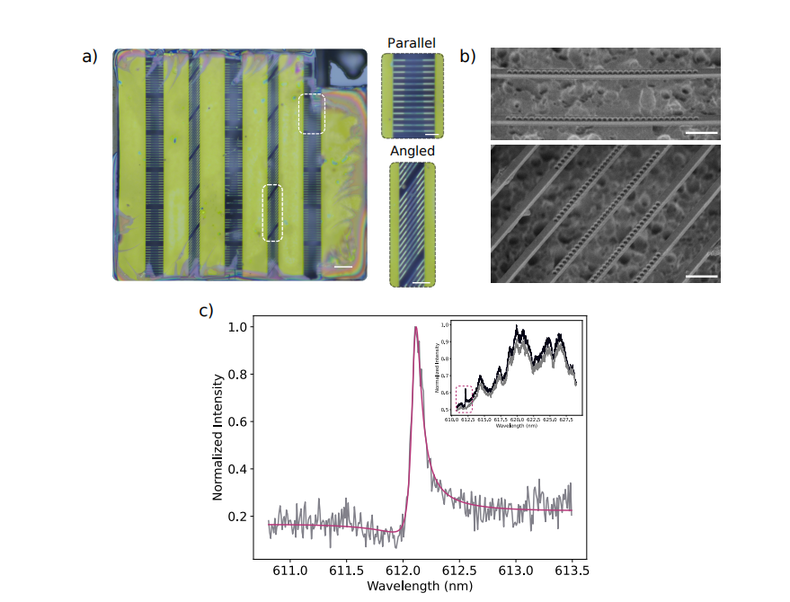 Cavity Orientation and Device Characterization: The paper explores the effects of cavity orientation on the Purcell factor, finding that alignment of the cavity mode with the dipole orientation of the SnV− transition is crucial for maximizing emission enhancement. The study also discusses the secondary emitter present in the angled cavity mode, which demonstrated different emission characteristics compared to the primary emitter.