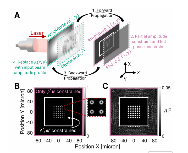 To design these metasurfaces, the Gerchberg-Saxton algorithm was adapted to optimize for both amplitude and phase profiles, enabling the generation of 3D bottle beams (dark traps) with high uniformity. The metasurfaces were fabricated and experimentally validated to generate various configurations of traps, including single-species and dual-species arrays.