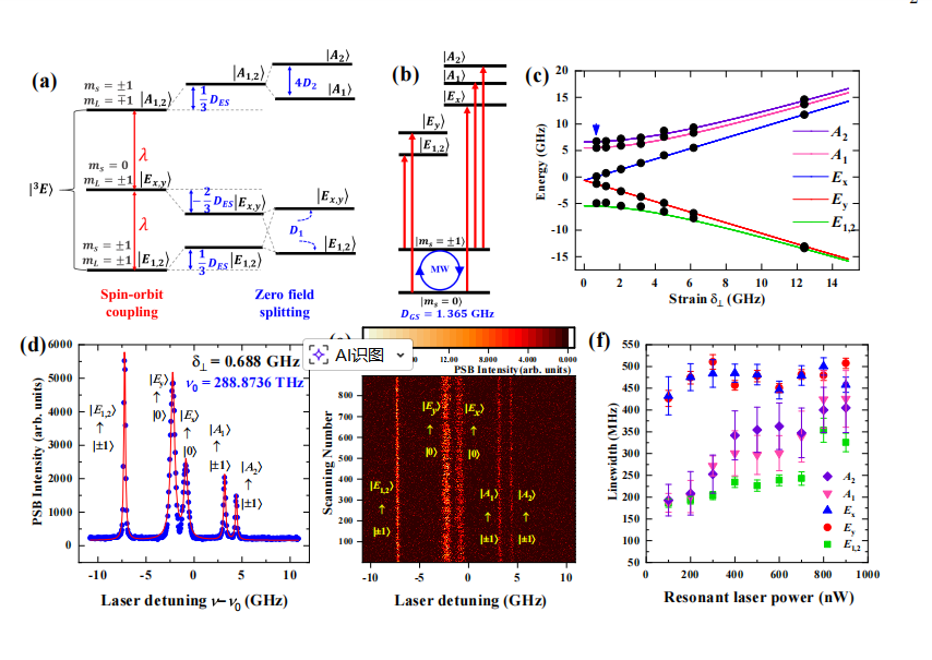 Excited-State Fine Structure: The study uses group-theoretical modeling and strain-dependent measurements to resolve the fine structure of the excited state of PL6 centers. The energy levels are split due to spin-orbit coupling and spin-spin interactions, with the transverse strain being the dominant factor.