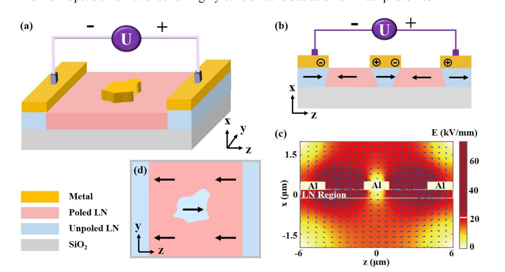 Robustness of the Approach: The technique was shown to be highly robust, as it effectively prevents the common issues of nonuniform domain growth caused by surface defects, adsorbed charges, and electrode imperfections that typically occur in conventional electric-field poling methods. The unpoled regions were consistently defined by the nano-metal patterns, enabling reliable fabrication.