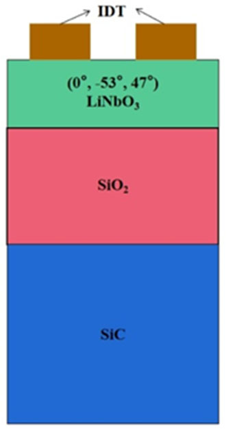 The study suggests that the combination of LiNbO₃ with SiO₂ and SiC provides effective temperature compensation and enhanced electromechanical properties for high-frequency applications.