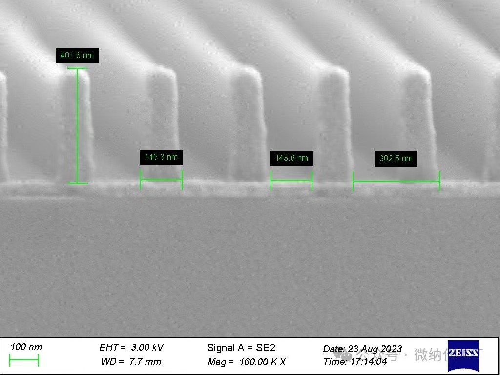 Application Fields: Processing of various micro-nano structures with line widths above 150 nm, diffraction optical waveguides, metastructures, silicon nitride, lithium niobate, silicon photonic waveguides, and other micro-nano structures.