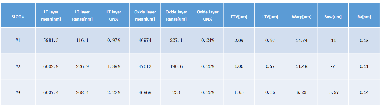 Compared with general LNOI wafer ,we add a innovative process:"Gas Cluster Ion Beam Trimming process " to improve the uniformity(Thickness uniformity Range<57A) of LN thickness and get lower roughness .